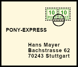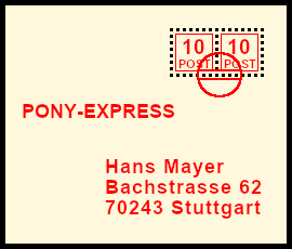 Forgery With Postal Marking: deceitful reprint of a postal shipment, all parts are bogus (postage stamp, handstamp, postal marking)