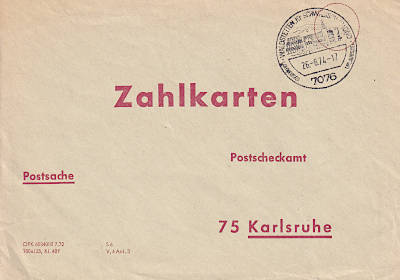 Postal Marking Postal Check Letter: marking indicating a mostly free of charge postal shipment for the purpose of submit-ting orders from an account holder to his postal check office |