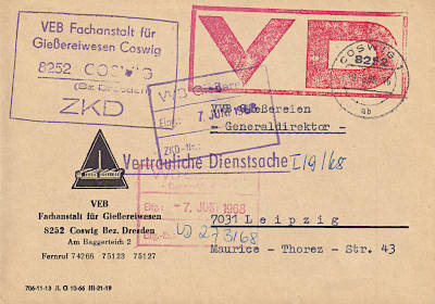 Postal Marking Confidential Official Shipment: marking indicating an additional service where an official shipment is only delivered to the specified recipient group (Vertrauliche Dienstsache) |