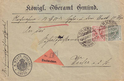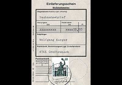 Cash On Delivery: special service in which the postal shipment is only handed over to the recipient after payment of the amount of money specified by the sender (additional service in Germany from June 1st, 1890) |