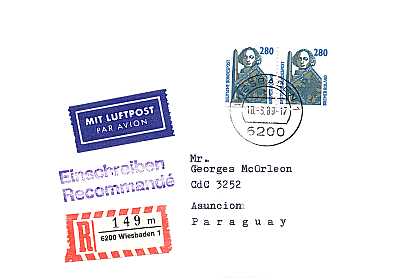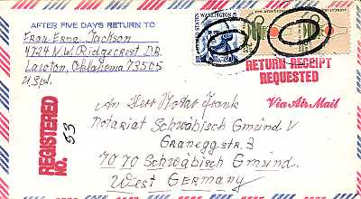 Cover with registeration, personal delivery, airmail and advice of delivery |