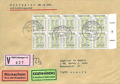 Cover with value, special delivery and airmail |