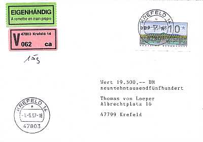 Cover with registeration, personal delivery and advice of delivery |