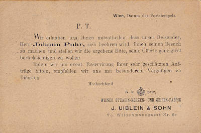 Representative Card: announcement of a visit by a company representative on a pre-printed postcard |