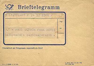 Letter Telegram: telegram with a reduced fee for which the delivery was not made by an express courier but by letter post |