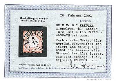 Stamped Expert´s Mark: postage stamp with an expert´s mark affixed by a stamp |