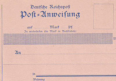 Azure Lines: narrow wavy lines unter a amound field in a postal stationary form print to prevent value manipulations