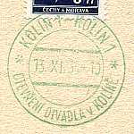 Tricolour Postmark: postage stamp with postmark in three colours using a split three-colour ink pad as intended style