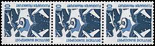 Strip of three: sheet part with 3 the same or different postage stamps connected in a line |