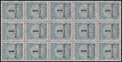 Block of fifteen: sheet part with 15 the same or different postage stamps |