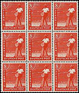 Block of nine: sheet part with 9 the same or different postage stamps |