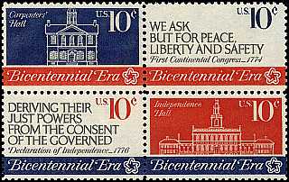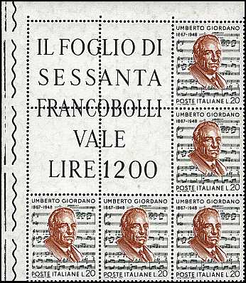 Block of nine with 5 postage stamps and 4 printed labels with the sheet value price |