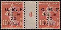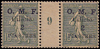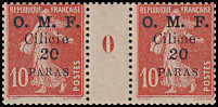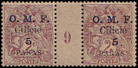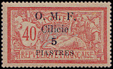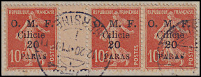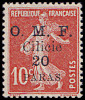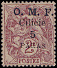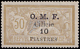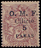 Portomarken von Frankreich mit vierzeiligem Aufdruck "O. M. F./ Cilicie/ Wertziffer"