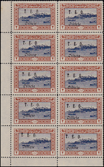 block of 10 with "TFF" 1st row right, "FIL" 3rd row right, low "C" in "Cilicie" 4th row left, "TLL" 4th row right, and low "CIL" in "Cilicie" 5th row right |