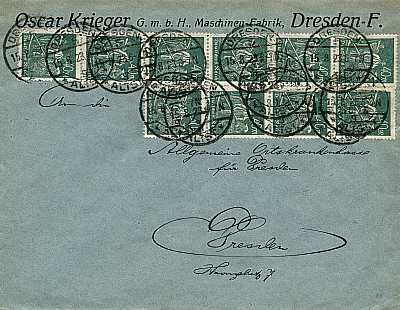 Local cover (1-20 g) from 30.07.1923 (14. Period) franked with 3 stamps a 40 Mark (=120 Mark) |