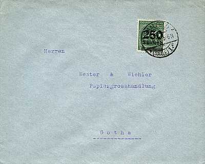 Inland cover (1-20 g) from 27.09.1923 (18. Period) franked with one stamp a 250 000 Mark on 300 Mark (=250 000 Mark)