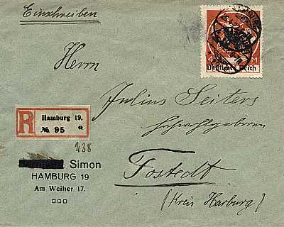 Inland cover with registeration (1-20 g) from 26.04.1922 (7. Period) franked with one stamp a 4 Mark (=4 Mark, 2 cover 2 registeration)