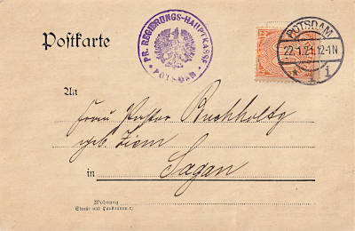 Inland postcard from 22.01.1921 (5. Period) franked with one stamp a 30 Pfennig