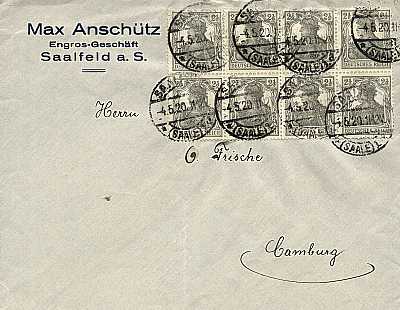 Inland printed matter (1-50 g) from 12.04.1919 (3. Period) franked with 2 stamps a 2½ Pfennig (=5 Pfennig) |