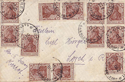Inland cover (21-250 g) from 12.12.1920 (5. Period) franked with 12 stamps a 5 Pfennig (=60 Pfennig)