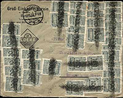 Foreign cover (41-60 g) from 03.11.1923 (22. Period) franked with 4 stamps a 100 Million Mark (=400 Million Mark) |