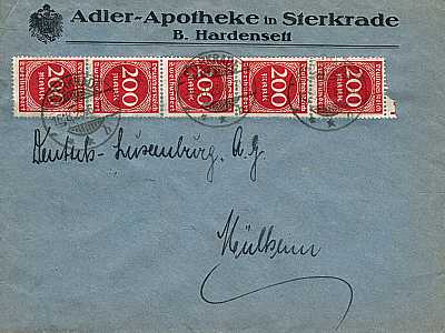 Inlandsdrucksache (1-25 g) vom 23.08.1923 (15. Periode) frankiert mit einer Marke a 200 Mark (=200 Mark) |