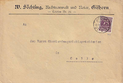 Inland cover (1-20 g) from 18.09.1923 (17. Period) franked with one stamp a 75 000 Mark (=75 000 Mark)