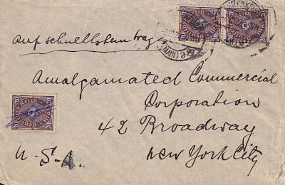Foreign cover (21-40 g) from 07.12.1922 (10. Period) franked with 3 stamps a 20 Mark (=60 Mark) |