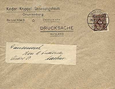Foreign printed matter (1-50 g) from 26.02.1923 (12. Period) franked with one stamp a 30 Mark (=30 Mark) |