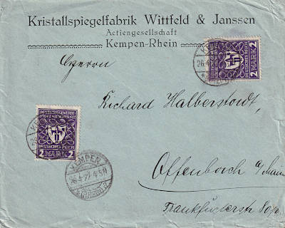 Inland printed matter (1-25 g) from 30.11.1922 (10. Period) franked with one stamp a 2 Mark (=2 Mark) |