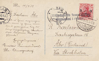 Foreign postcard from 14.09.1919 franked with one stamp a 10 Pfennig (=10 Pfennig)
