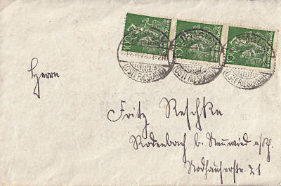 Inlandsbrief (1-20 g) vom 26.07.1922 frankiert mit 3 Marken a 1 Mark (=3 Mark) |