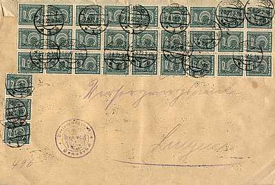 Inlandsbrief (1-20 g) vom 04.09.1922 frankiert mit 10 Marken a 30 Pfennig (=3 Mark) |