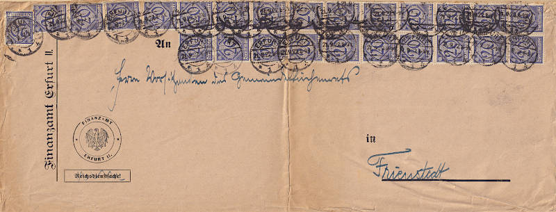 Inlandsbrief (1-20 g) vom 17.07.1922 frankiert mit 10 Marken a 30 Pfennig (=3 Mark) |
