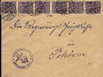 Inlandsbrief (1-20 g) vom 07.09.1922 frankiert mit 6 Marken a 50 Pfennig (=3 Mark) |