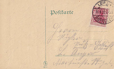 Ortspostkarte vom 31.08.1922 frankiert mit einer Marke a 75 Pfennig (=75 Pfennig)