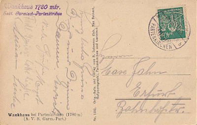 Inland postcard from 04.03.1923 franked with 8 stamps a 5 Mark (=40 Mark) |