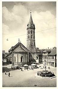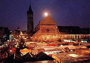 Ostseite mit Marktständenund Marktbrunnen 1953
