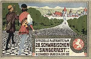 Der Knabe Schiller anno 1765 vor dem Gasthaus zum Ritter in Gmünd beim Murmelspiel 1905 |