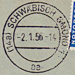 "Zweikreisstegstempel (bozbu) "(14a) SCHWÄBISCH GMÜND 1/ (Datum)/ aa"; sechs flache Wellenlinien mit engem Abstand