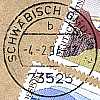 Zweikreisstegstempel (bozbu) "SCHWÄBISCH GMÜND 2/ g/ (Datum)/ 73525"