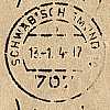Einkreisstempel mit Stegsegment oben (bo3z) "SCHWÄBISCH GMÜND 10/ a/ (Datum)/ 707"