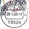 Einkreisstempel mit Stegsegment oben (bo3z) "SCHWÄBISCH GMÜND 11/ a/ (Datum)/ 73529"