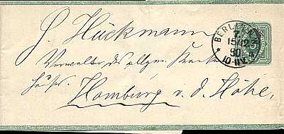 Inlandsdrucksache (1-50 g) vom 15.12.1880 frankiert mit einem Wertstempel a 3 Pfennig (=3 Pfennig) |