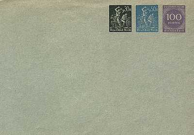 Envelope with 3 stamp impressions a 30 Mark, 50 Mark and 100 Mark (=180 Mark)
