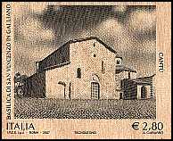 02.07.2007 Künstlerisches und kulturelles Erbe:Basilika des Heiligen Vinzenz in Galliano gedruckt auf Holz