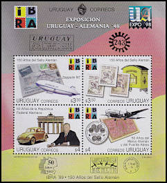 Uruguay 10 Centesimos 1928, 50 Centesimos 1932 and 2 Peso 1935 on Zeppelin-Cover