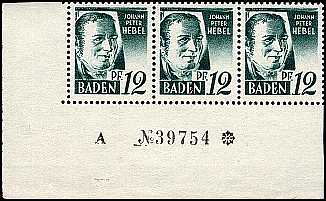 Postgebietsangabe: Kennzeichnung auf einem Bogenrand um gleichfarbige Brief- marken unterschiedlicher Postgebiete zu unterscheiden |