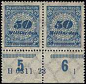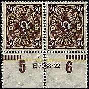 doppelter Reihenwertzähler: Bogenrand mit 2 Reihenwertzähler, einen für den Bildruck und der andere für den Aufdruck |
