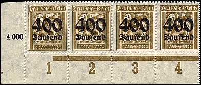 Klischeenummer: fortlaufende Nummern auf dem linken Bogenrand bei Briefmarken die im Walzendruck hergestellt wurden (Gruppenpaarnummer) |